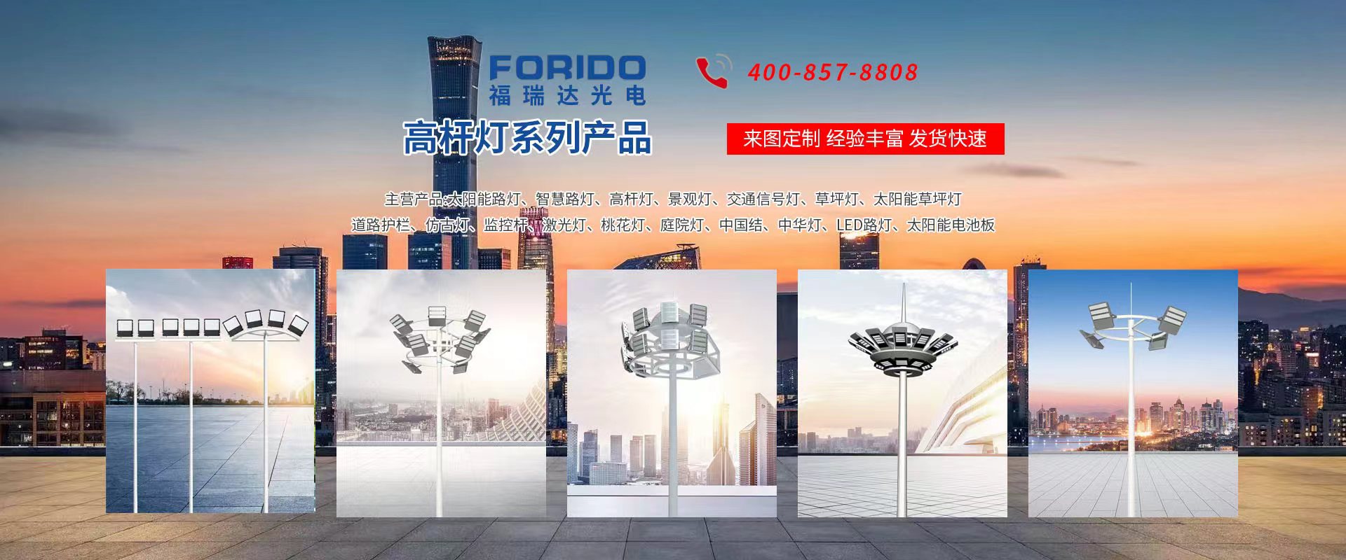揚州福瑞達光電科技有限公司位于淮左名都歷史文化名城、中國路燈制造基地揚州市北郊菱塘工業(yè)園,公司占地面積76000平方米,注冊資金10518萬元,擁有高級技術嫻熟的員工280多人,擁有大型折彎機、激光切割、數控注塑機、壓鑄機、自動埋弧焊、氣焊、彩色粉末靜電噴塑等大型自動化設備,我公司是一家集設計、研發(fā)、生產、銷售、施工安裝服務為一體的戶外交通照明產品制造商,主要生產智慧路燈、太陽能路燈、LED路燈、高桿燈、景觀燈、交通信號燈、交通標志牌、通信鐵塔、路跨鋼結構、公交站臺、太陽能光伏組件、景點亮化、樓宇亮化工程的設計施工等。公司秉承開拓創(chuàng)新、銳意進取、精誠服務的企業(yè)精神,堅持以“誠信為本、技術為先、服務是金”的合作理念,我們憑借先進的制造工藝、優(yōu)質的產品質量、合理的市場價格和完善的售后服務贏得了廣闊的市場和客戶的信賴。  我公司已通過ISO9001質量體系認證、ISO14001環(huán)境管理體認證,CQC產品認證,中國節(jié)能產品認證,通過“CCC”強制性產品認證,具有市政總承包,照明,交安,設計等資質···